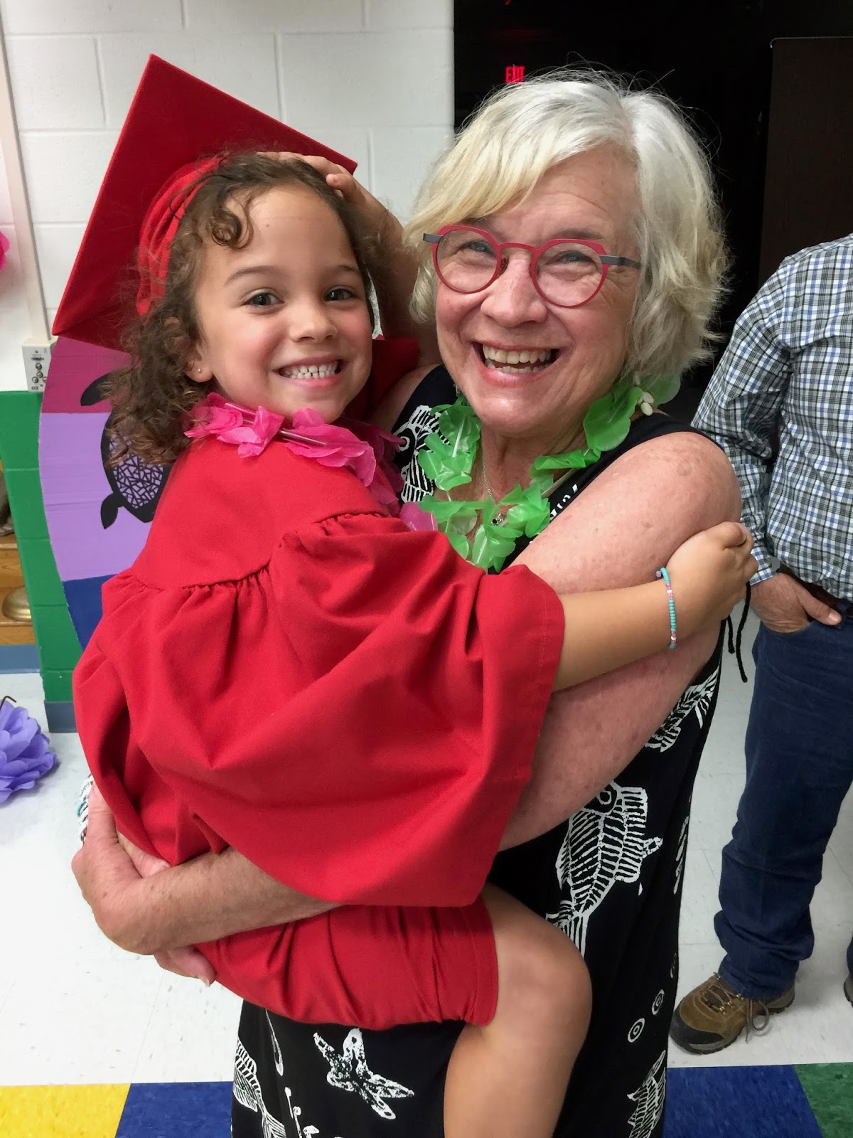 Elena's pre-K graduation lasted almost as long as a high school graduation. The little graduates sang four songs and watched a slide show of their year, then were given diplomas which they tooted like horns, karate-chopped, and talked into like telephones.
